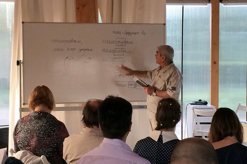 Самый популярный на курсах — таджикский язык. Он принадлежит к западноиранской группе индоевропейских языков и, пожалуй, самый экзотический из всех представленных. На первое занятие пришли 40 человек.