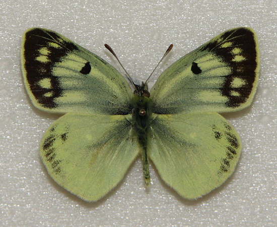 желтушка Христофа (Colias christophi Cr.-Cr.)Один из самых редких и необычных видов – желтушка Христофа (Colias christophi Cr.-Cr.). Интересна эта бабочка прежде всего своей окраской. Ее не то что белянкой, желтушкой-то трудно назвать, потому что в ее окрасе присутствуют более всего черный и сероватый тона. Несмотря на то, что у большинства желтушек присутствует половой диморфизм, у желтушки Христофа оба пола практически одинаковы, поэтому определить пол у присутствующего в коллекции экземпляра не удалось. Этот вид описал ученый-энтомолог Грум-Гржимайло, назвав его именем известного энтомолога и неутомимого сборщика насекомых Христофа, который много путешествовал по Средней Азии и Кавказу. Встретить эту бабочку можно только в Средней Азии, высоко в горах. Здесь, на каменистых склонах, многие растения приобретают так называемую подушковидную форму; на одном из таких растений-подушек – астрагале ежевидном – и живут гусеницы этой желтушки. Эта приспособленность к одному виду растений и объясняет отчасти редкость бабочек. Дает одно поколение в году. Была внесена в Красную книгу быв. СССР.