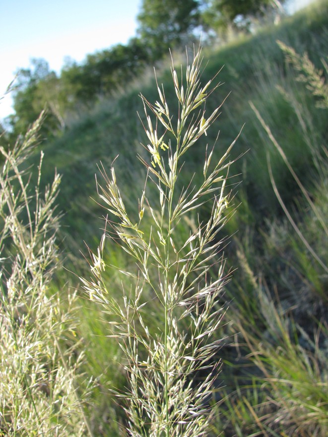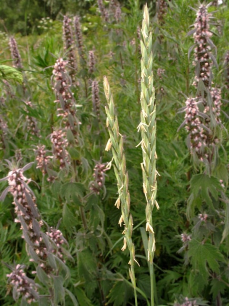 Чий блестящий (Achnatherum splendens)Чий (лат. Achnatherum) — род многолетних травянистых растений семейства Злаки, или Мятликовые (Poaceae), нередко объединяемый с ковылём (Stipa L.), но более примитивный. Соцветие — сжатая или раскидистая метёлка с длинными тонкими веточками. Колоски одноцветковые, немного сжатые с боков. Колосковых чешуй 2, перепончатых, ланцетных, немного длиннее цветка. Нижняя цветковая чешуя немного кожистая, на верхушке двузубчатая, с длинной тонкой остью, выходящей между зубцами, вначале прямой, позже, в нижней части, согнутой или скрученной. Цветочных плёночек 3. Плод — цилиндрическая зерновка, плотно обёрнутая цветочными чешуями. Виды рода чий имеют небольшие зоохорно распространяющиеся диаспоры в умеренном и субтропическом поясах Евразии, Северной Африки и Северной Америки. Значительные заросли разных видов чия, занимающие около 2 млн га, находятся в Казахстане. В аридных районах Азии (на Южном Урале, юге Сибири и в Средней Азии), а также на Нижней Волге — то есть в степях и полупустынях, на засолённых почвах, на щебнистых и каменистых склонах — своеобразные растительные группировки — чиевники — образует крупнодерновинный Чий блестящий (Achnatherum splendens (Trin.) Nevski). Заросли чия — излюбленное место обитания зайца-толая. В прошлом чий широко использовался народами Центральной Азии: из него делали панно для украшения стен юрты, с помощью которых кочевники одновременно сохраняли тепло внутри жилища. В настоящее время техника чий сохранилось в национальном и современном изобразительном искусстве Центральной Азии. Сухие стебли этого растения используют для плетения изделий, а также как сырьё для бумажного целлюлозного производства. Бумага из этого злака получается очень высокого качества. Пырей ползучий (лат. Elytrígia répens)Пырей ползучий (лат. Elytrigia repens) — многолетнее травянистое растение; самый известный вид рода Пырей семейства Злаки. Корневища длинные, ползучие горизонтальные, залегают на глубине от 5 до 15 см. Высота стебля от 40 до 150 см. Листья линейные, 15—40 см длиной, шириной 3—10 мм у основания растения и 2—8,5 мм выше по стеблю. Цветки (от 3 до 8) собраны в колоски длиной 1—2 см, шириной 5—7 мм и толщиной 3 мм. Колоски собраны в редкий колос длиной от 10 до 30 см. Колосковые и нижняя цветковая чешуя постепенно суживаются к верхушке и переходят в ость. Натурализован по всему миру, во многих местах считается злостным сорняком. Для уничтожения в условиях огорода применяют перекапывание почвы с удалением корневищ вручную, мульчирование. Вне почвы корневища пырея быстро высыхают и гибнут. Листья служат кормом для многих травоядных. Семена едят некоторые птицы, например пуночки. В научной медицине траву и корневища применяют как мочегонное, потогонное, отхаркивающее и слабое слабительное средство. В народной медицине сок свежих листьев используют для лечения простуды, бронхита, воспаления лёгких, жёлчно- и мочекаменной болезни, остеохондроза, фурункулёза. Целебные ванны с настоем травы полезны при диатезе (золотухе), геморрое и рахите. В народной медицине используют высушенные корневища пырея ползучего. Они содержат малоизученные гликозиды, слизь и другие полисахариды, следы эфирного масла, аскорбиновую кислоту, каротин. Применяют в виде отвара как противовоспалительное средство при ревматизме, подагре, воспалениях мочевого пузыря, поче