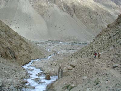 Незначительная часть площади республики (9,2%) находится севернее Туркестанского хребта в бассейне Сырдарьи, а территория, расположенная к югу от Туркестанского хребта, в бассейне Амударьи. По южной границе с Афганистаном протекает река Пяндж, являющаяся верховьем Амударьи. Она берет свое начало из памирского озера Зоркуль и до впадения с афганской стороны левого притока -Вахандарьи – носит название Памир. В направлении с востока на запад с правой стороны в реку Пяндж впадают следующие крупные реки: Гунт с притоком Шахдара, Бартанг (Мургаб) с притоком Гудара, Язгулем, Ванч, Кызылсу (южная) с притоком Яхсу, Вахш с притоком Обихингоу. Ниже слияния Вахша с Пянджем река носит название Амударья, в которую впадают река Кафирниган с притоками Варзоб, Ханака, Каратаг и Сурхандарья с многочисленными притоками. На территории Таджикистана находятся верховья Амударьи и Зеравшана, незначительная средняя часть Сырдарьи и притоки этих трех рек. Воды крупных многоводных рек в пределах республики используются на орошение частично. Значительно большее количество воды этих рек используется на орошение в Узбекистане и Туркмении. Остатки воды через крупные реки Сырдарью и Амударью впадают в Аральское море. Большинство рек Таджикистана отличается очень крутым падением. На Восточном Памире они стекают с высот 5000-4000 м на равнины, расположенные на отметках 3000-3500 м – до 1200-1500м, в северной, центральной и южной частях Таджикистана – с 2000-3000 м – до 300-150 м. Благодаря крутым падениям и многоводности рек Таджикистан имеет колоссальные запасы водной энергии, составляющие около половины запасов гидроэнергии всей Средней Азии. В горной зоне реки представляет собой бурные потоки в теснинах ущелий или среди обрывистых террас. Твердость горных пород, слагающих русла и долины рек, благоприятствует созданию водохранилищ и гидроэлектростанций. Реки Таджикистана (по В.Л. Шульцу) имеют 4 типа питания: ледниково-снеговое, снегово-ледниковое, снегово-дождевое и снеговое. Реки ледниково-снегового питания берут начало высоко в горах, где беспрерывно накапливаются ледники и снега. На Памиро-Дарвазской возвышенности, почти сплошь покрытой ледниками, находятся истоки главных притоков Амударьи – Вахша и Пянджа. Из ледников и снежников центрального горного массива вытекают Зеравшан и некоторые левые притоки Сырдарьи. Наибольший сток воды приходится на июль и август – период преимущественного таяния снегов и ледников. К этому типу рек относятся Вахш, Обихингоу, Гунт, Шахдара, Бартанг, Язгулем, Ванч, Зеравшан, Фандарья, Ягноб, Искандерья, Кштут, Магиян, Исфара и Сырдарья. Наибольший сток на реках снегово-ледникового питания приходится на май и июнь. К рекам этого типа относятся Кафирниган, Варзоб, Ханака, Каратаг, Шеркент, Сангикар. Водотоки снегово-дождевого питания наибольший сток имеют в марте-мае. Паводки здесь носят селевой характер. К рекам этого типа питания относятся Кызылсу (южная), Яхсу. На реках снегового питания наибольший сток приходится на апрель и май. К ним относятся малые притоки в среднем и нижнем течении Варзоба, Кафирнигана, Иляка, Лучоба. Представителем этого типа питания является река Гурке – правый приток Варзоба. Кроме рек, рассмотренных по типу питания, в Таджикистане имеются небольшие речки, образованные родниками. В некоторых районах – у подно
