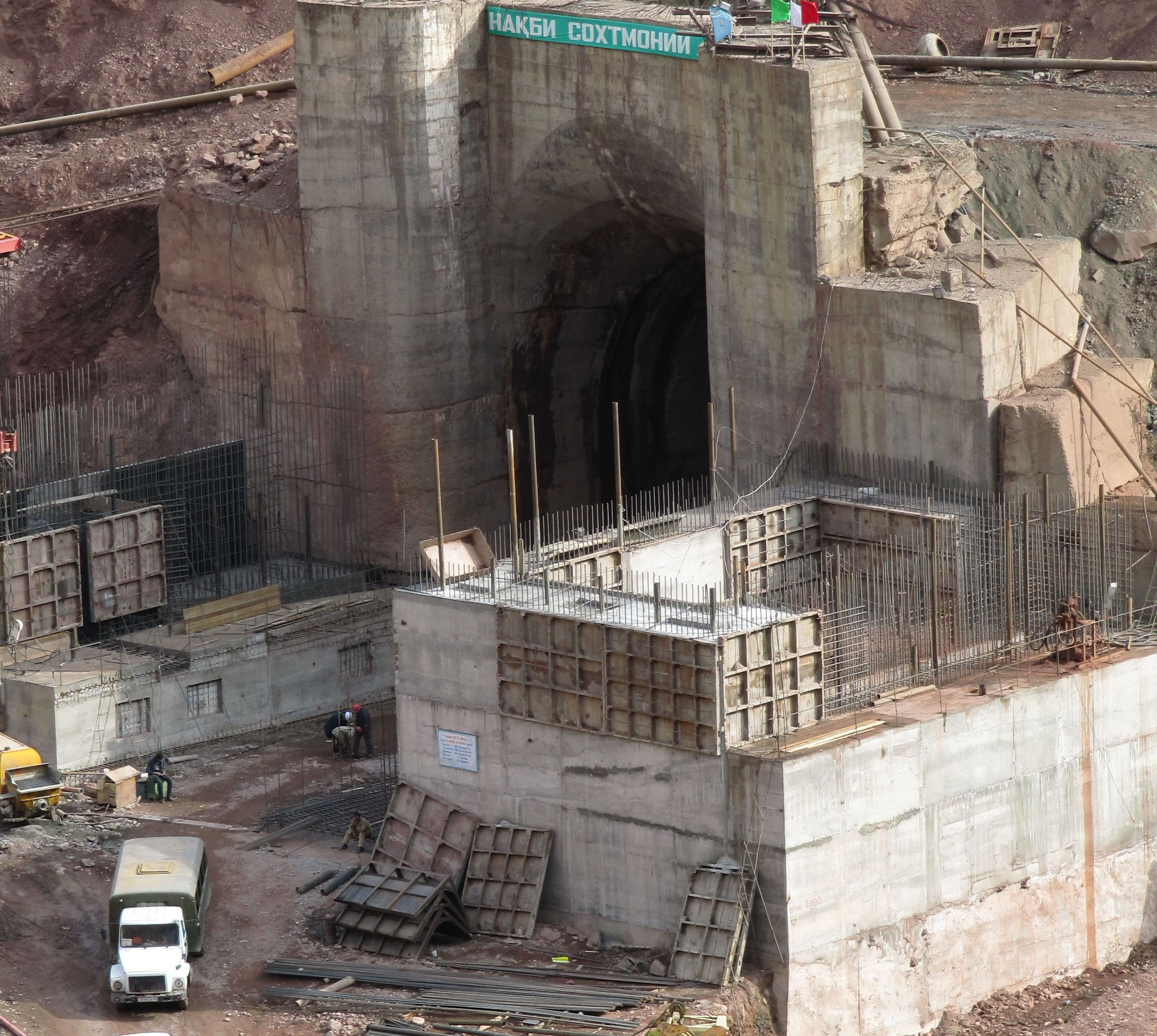 НАША СПРАВКА: Согласно проекту плотина (каменно-набросная, высота 335 м) Рогунской ГЭС в случае завершения строительства станет самой высокой в мире.