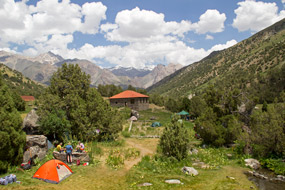 | Туризм в Таджикистане Общие сведения Туристические фирмы Фанские горы Альпинистский лагерь Вертикаль Альпинистский лагерь Артуч Альпинистский лагерь Альп-Навруз Альпинистский лагерь Варзоб Турбаза Искандеркуль Горнолыжный курорт Сафедорак |